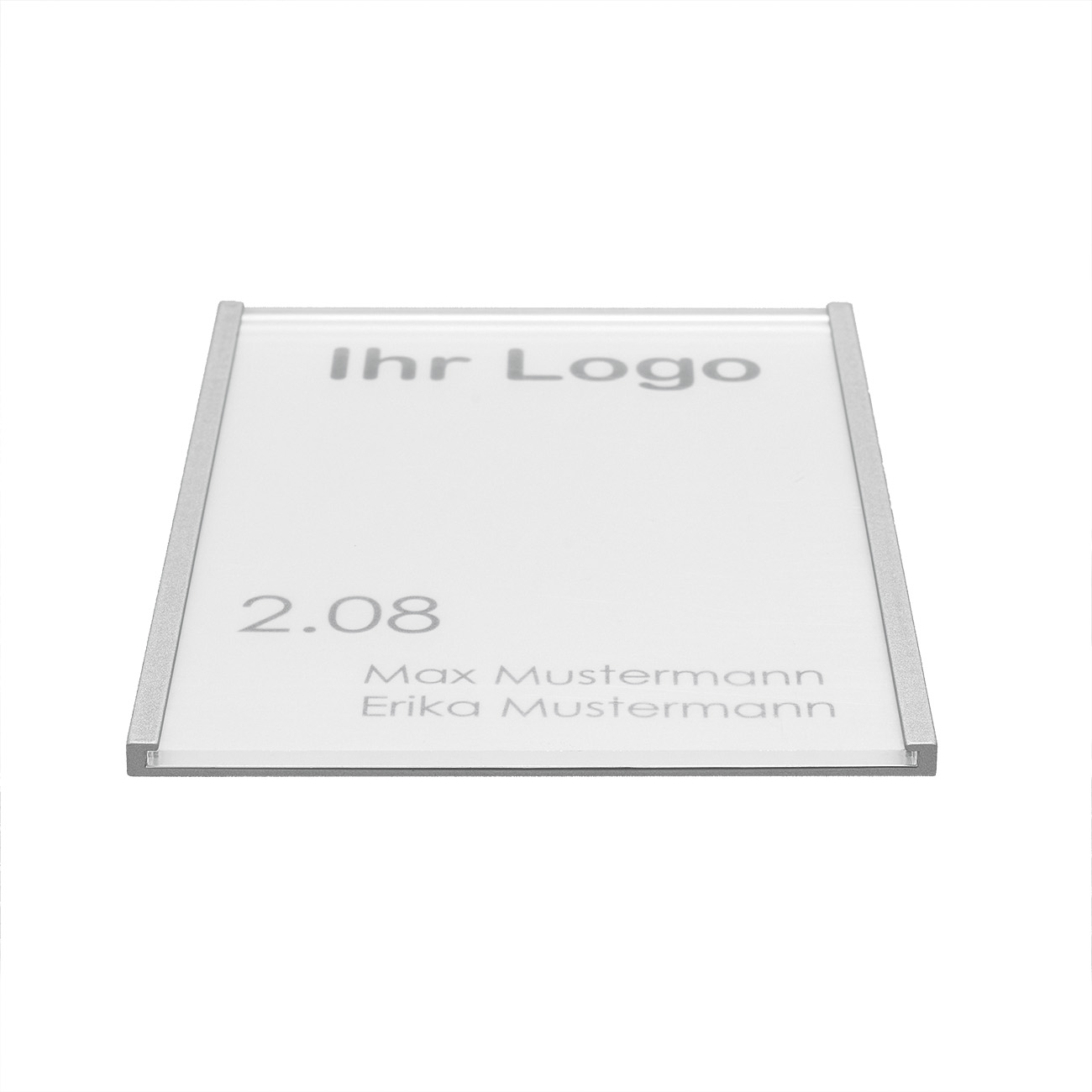 Das Türschild unserer Techno Line 120 überzeugt durch ein hochwertiges und schlichtes Design sowie einer einfachen Handhabung. Das Schild wird wand-nah befestigt. Die dafür nötigen Schrauben und Dübel liefern wir natürlich inklusiv mit. Das Türschild besteht aus einem Aluminiumrahmen und einer Acrylglasscheibe. Diese ist antireflektierend beschichtet, somit sind die Informationen auf dem Schild auch bei Lichteinfall gut lesbar.