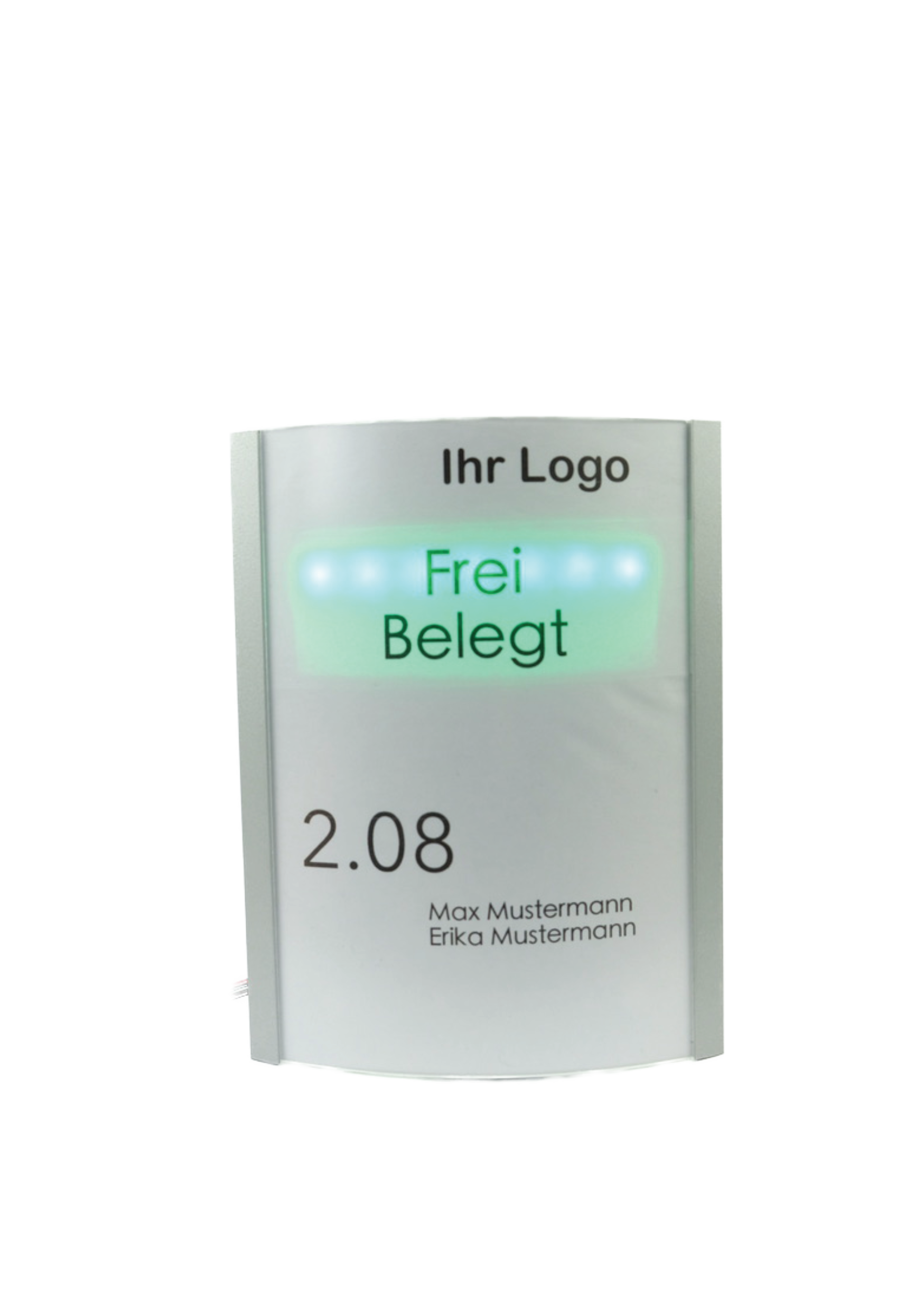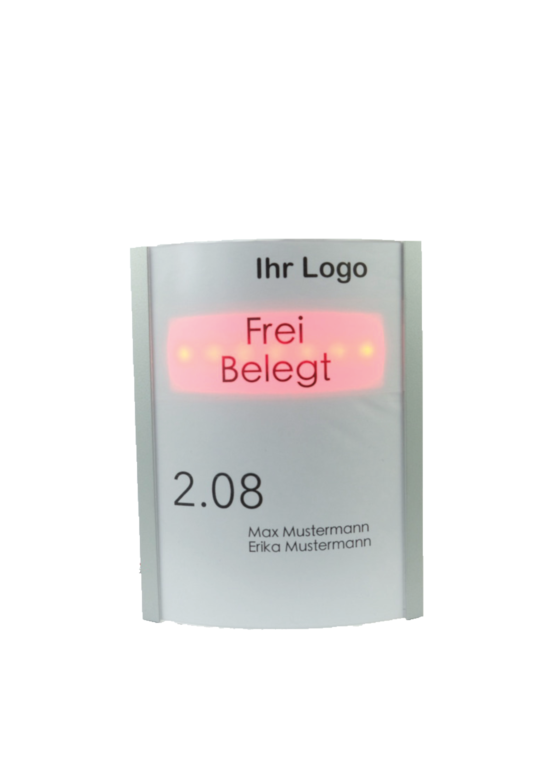 Das Türschild 100 unserer Techno-Line überzeugt durch eine einfache Handhabung und die Möglichkeit, ein LED-Statuslicht in den drei Farben: grün, rot und weiß einzustellen. Es hat eine konvexe Form und besteht aus Aluminium und Acrylglas. Das Acrylglas ist antireflexbeschichtet, somit sind die Informationen auch bei Lichteinfall gut lesbar. Ob für Ihre Praxis, Ihr Büro oder für Verwaltungsgebäude, mit dieser Beschilderung liegen sie richtig!