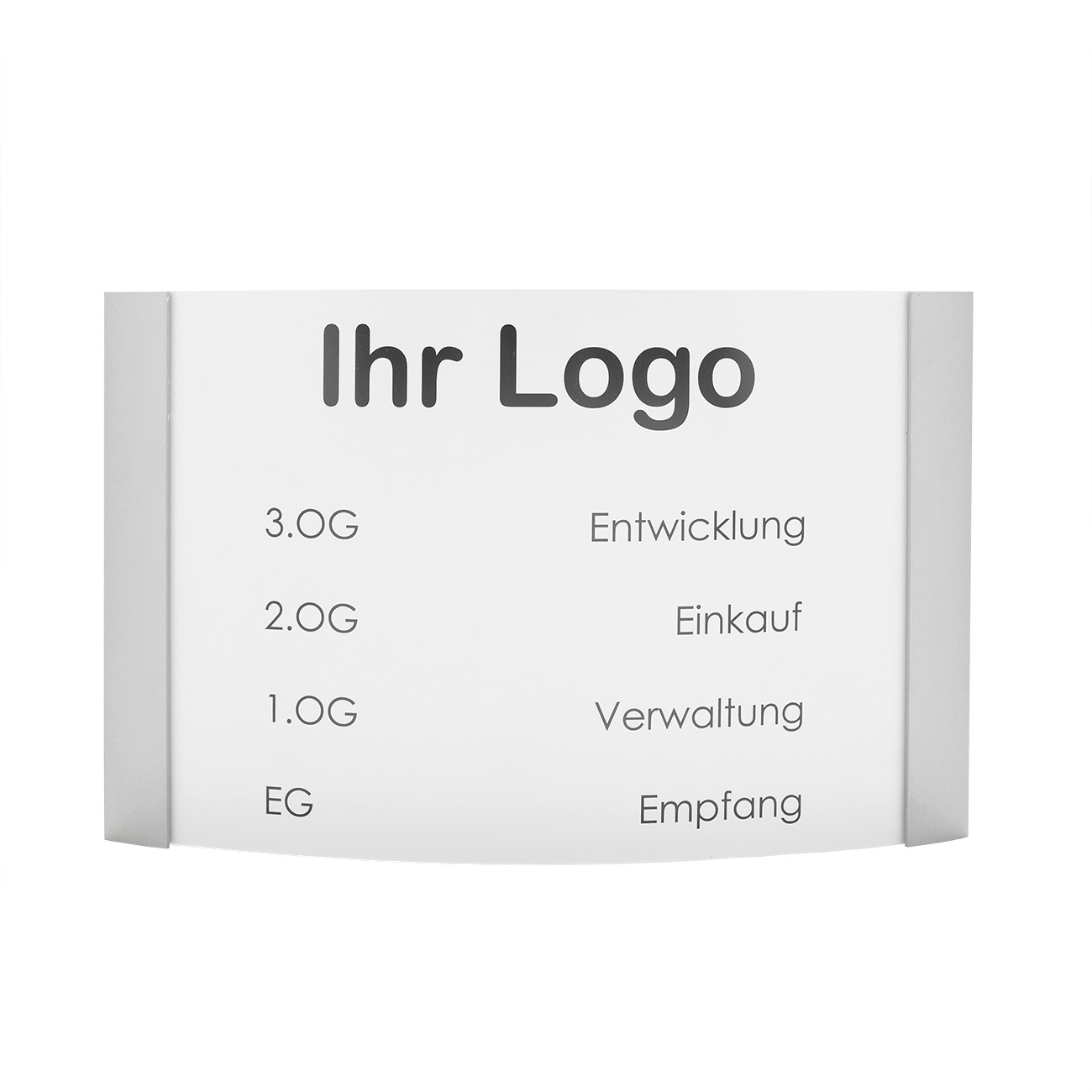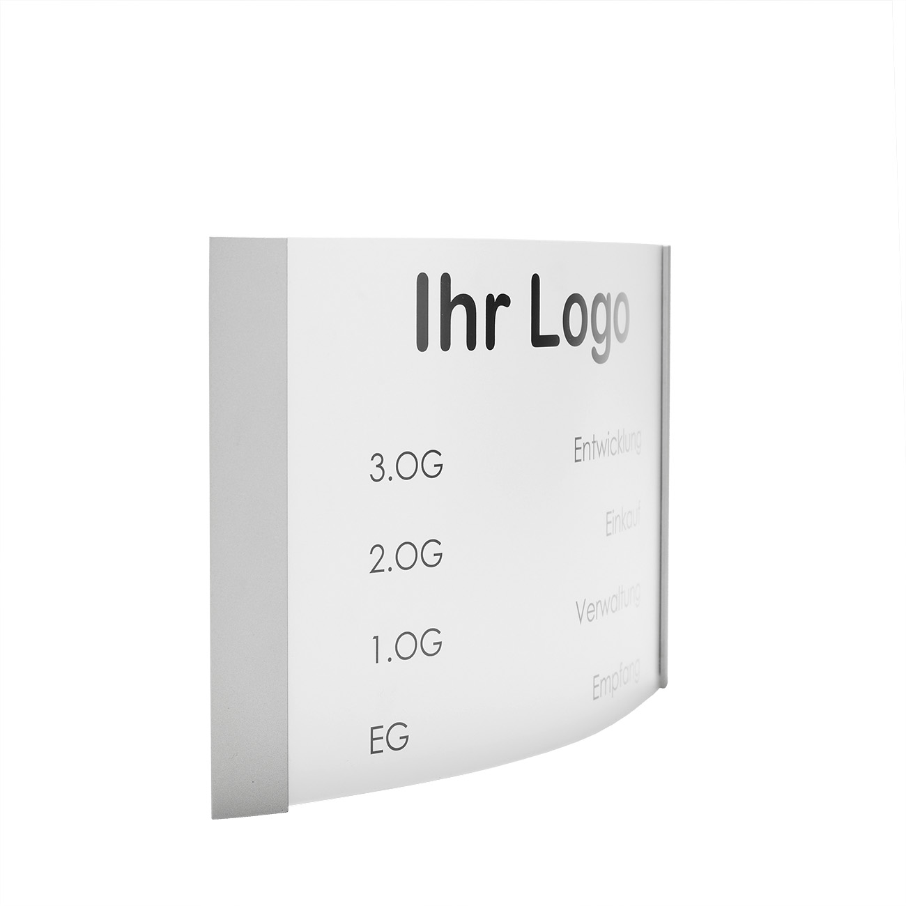 Der Unterwegweiser unserer Techno-Line 100 überzeugt durch eine einfache Handhabung und sein schlichtes Design. Er verschafft Ihren Besuchern, Gästen oder Kunden einen Überblick über die Stockwerke und Räume. Der Wegweiser hat eine konvexe Form und besteht aus Aluminium und Acrylglas. Das Acrylglas ist antireflexbeschichtet, somit sind die Informationen auch bei Lichteinfall gut lesbar. Ob für Ihre Praxis, Ihr Büro oder für Verwaltungsgebäude, mit dieser Beschilderung liegen Sie richtig!